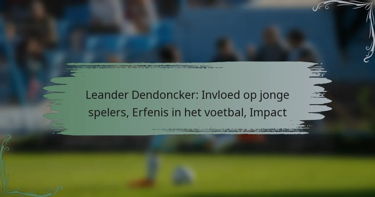 Leander Dendonckers nalatenschap in het voetbal wordt gekenmerkt door zijn veelzijdigheid, leiderschap en significante bijdragen aan de teamcultuur, met name in het Belgische voetbal. Zijn carrièreprestaties en invloed op jongere spelers benadrukken zijn belang in de sport.